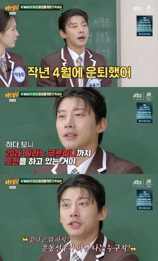 또 곽윤기는 “작년 4월에 은퇴했다”라고 말했고 서장훈은 “오래전에 은퇴한 걸로 알고 계신 분들이 많다”라고 덧붙였다. 곽윤기는 “원가 나이도 많고 해서 지레짐작을 하신 것 같다. 하다 보니 밀라노까지 도전을 하고 있는 것이다. 은퇴를 한다고 생각하니까 두려운 것이다. 끝나고 뭐하지. 운동선수가 아닌 나는 누구지. 불안감이 커서 용기를 못 냈다"라고 솔직하게 말했다.