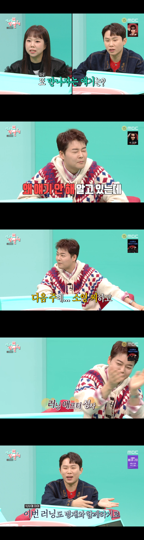 이때 전현무가 “왜 얘기를 안 하냐. 나는 알고 있다”며 폭로에 나섰다. 그는 “다음 주에 소영 씨랑 러닝을 하기로 했다”고 전했고, 양세형은 “병재도 같이 한다”며 급히 수습에 나섰다.