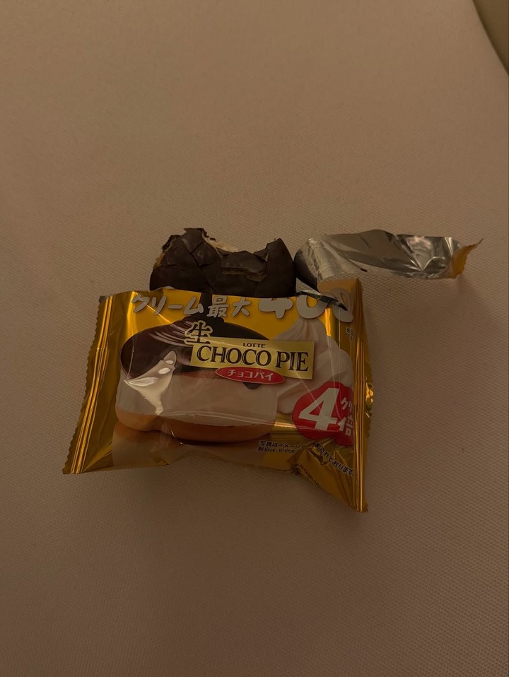 또 다른 사진에는 일본에서 구매한 롯데 초코파이를 한입 메어문 모습도 담겼다.