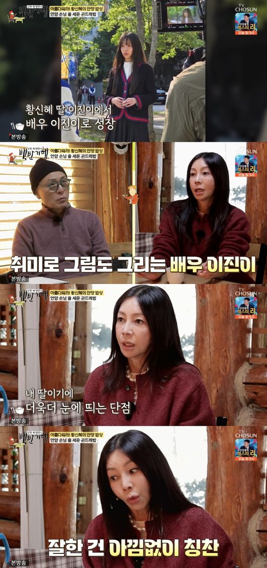 이날 허영만은 “딸 몇 살이냐”라고 물었다. 올해 26살이 됐다는 딸 이진이에 대해 황신혜는 “이번에 드라마 ‘서울 자가에 대기업 다니는 김부장 이야기’ 아시냐. 거기에 나왔다. 취미로 그림도 그린다. 그동안 했던 작품들이 소재로 다 나왔다”라고 밝혔다.
