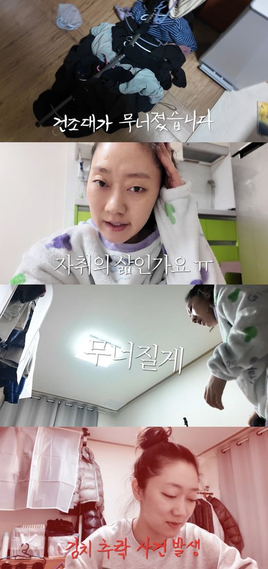 이날 박경혜는 손님맞이 후 열심히 청소한 뒤 휴식시간을 가졌다. 그때 건조대가 무너졌고, 그는 “이게 자취의 삶인가요. 잠깐만 누워볼까? 하는 순간 무너졌다”라고 토로했다.