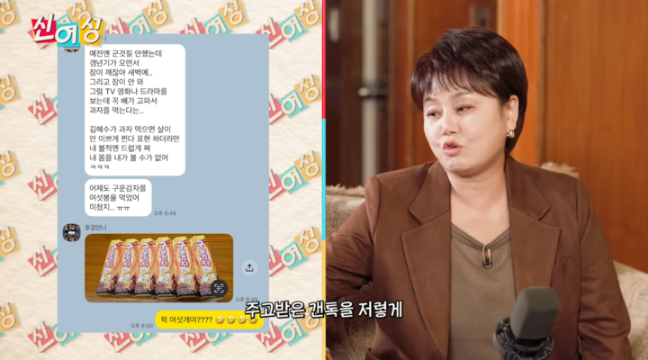 당황한 이경실은 “개인 문자를 이렇게 공개해도 되냐”며 머쓱해 하면서도 “과자 양이 얼마 되지 않았다”라고 항변했지만, 우창윤 전문의는 과자 대신 차라리 가오리 찜 같은 음식을 먹는 것이 건강에 훨씬 이롭다고 조언했다.