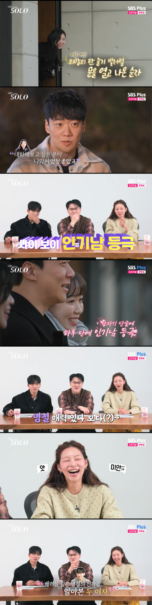 숙소 안에서 이 상황을 지켜보던 다른 출연진들의 반응도 심상치 않았다. 정숙이 “영철님이 자기소개 이후로”라며 영철의 인기를 언급하자, 이를 들은 현숙은 “영철님 자기소개 매력 있었어요?”라고 뼈 있는 돌직구 질문을 던져 MC들을 다시 한번 폭소케 했다.