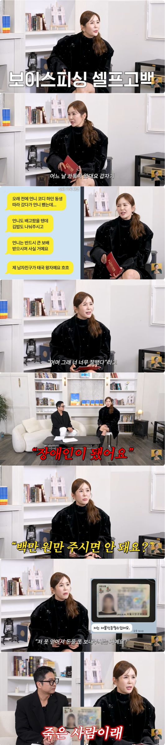 장영란은 과거 보이스피싱을 당할 뻔했던 아찔한 순간을 회상했다. 어느 날 갑자기 예전 코디네이터 동생이라며 연락이 왔고, 본인의 "남자친구가 태국 왕자"라는 황당한 주장을 하며 접근했다는 것.