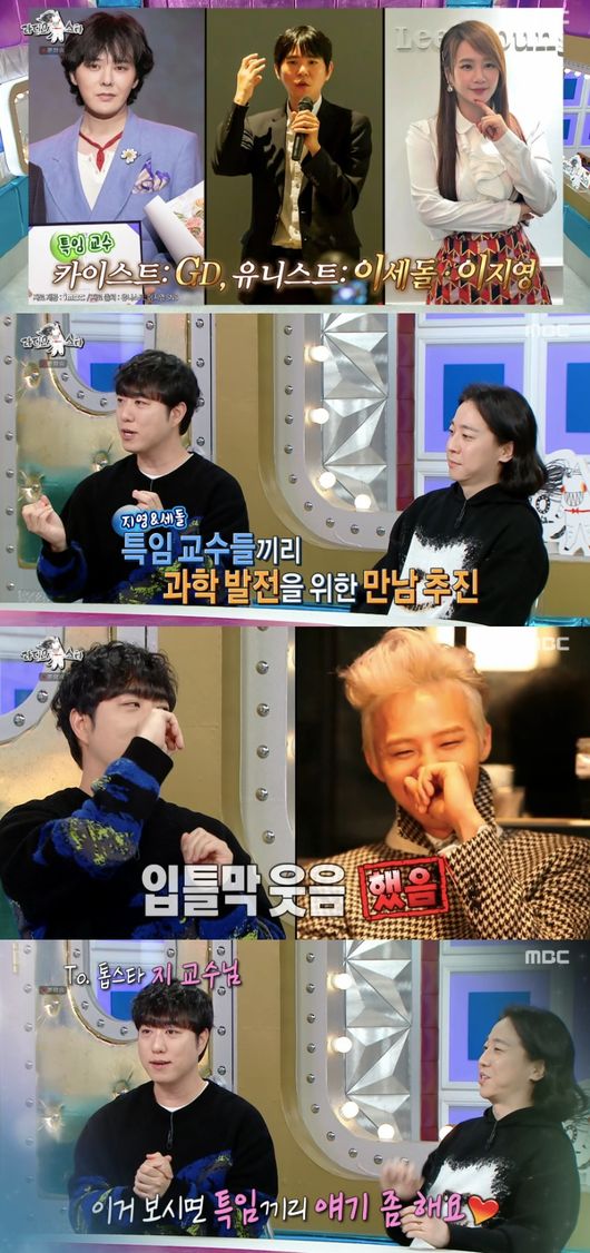 이날 궤도는 지드래곤과 남다른 인연이 있다고 고백했다. 그는 “우리나라 4개의 과학기술원이 있다. 카이스트, 디지스트, 유니스트, 지스트가 있는데 카이스트는 지드래곤, 유니스트에는 이세돌과 이지영이 특임교수로 있다”라고 설명했다.
