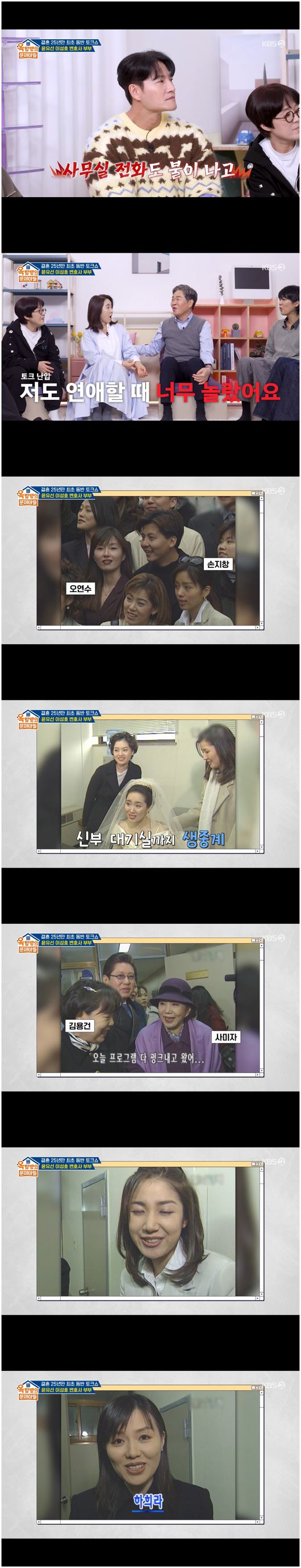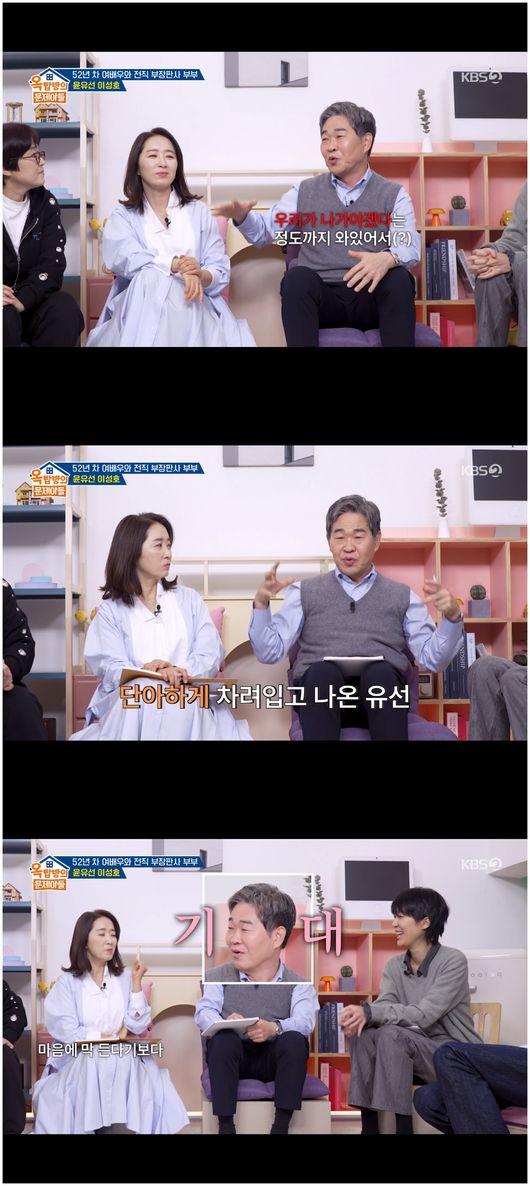 12일 방영한 KBS2TV 예능 ‘옥탑방의 문제아들’에서는 최초 부부 동반 출연 토크쇼가 펼쳐졌다. 배우 생활만 52년 차, 아역 배우부터 시작해 중견 배우로 자리를 굳건히 지키는 윤유선과 판사 생활 27년을 정리하고 변호사로 활동 중인 이성호가 등장했다.
