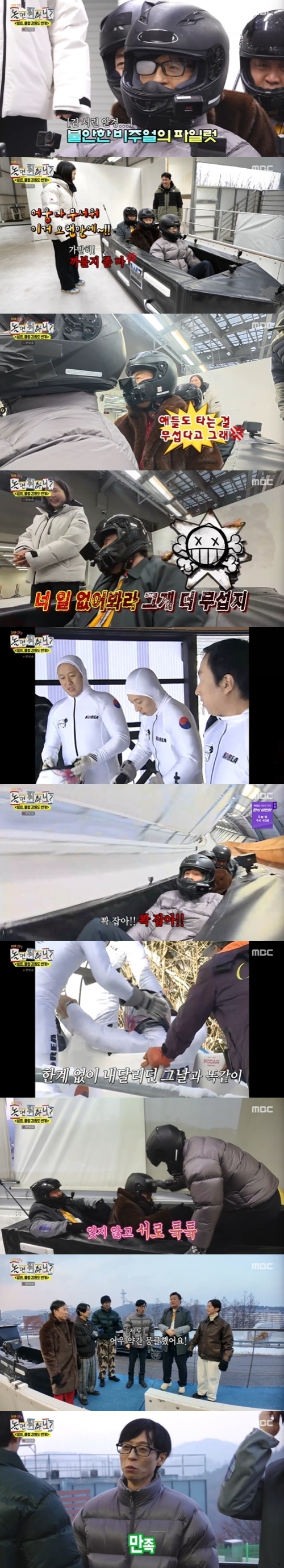 이런 가운데 이날 방송에서 유재석은 봅슬레이에서 하차하더니, "약간 뭉클했다"고 털어놨고, 박명수는 "옛날 느낌 난다"고 울컥하기도 했다.