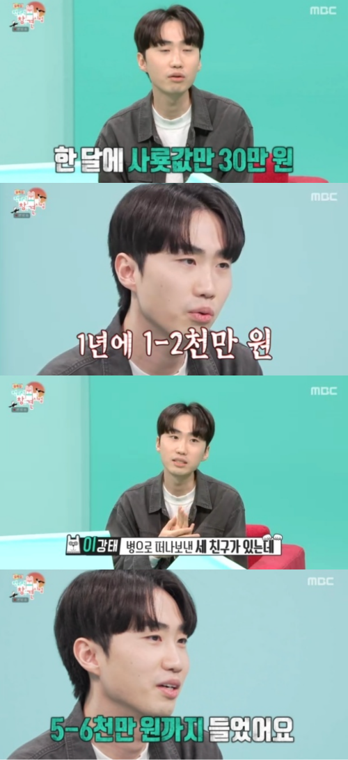 최대 9마리의 반려동물을 키워본 경험이 있다는 이강태는 사료비와 병원비에 대한 현실적인 부담도 숨기지 않았다. 그는 현재 기준으로 “한 달에 지금 한 30만 원씩 들어가고 병원비는 달보다 연간으로 계산하면 좋은데 1년에 1, 2천만 원이 든다”고 설명했다. 이어 과거 병으로 떠나보낸 반려동물들을 언급하며 “그 전에 병으로 떠나보낸 친구가 세 친구가 있는데 이 친구들을 케어할 때는 한 5, 6천만 원씩 들었다. 방사선 치료 비용이 만만치 않아서”라고 덧붙여 깊은 공감을 이끌었다.