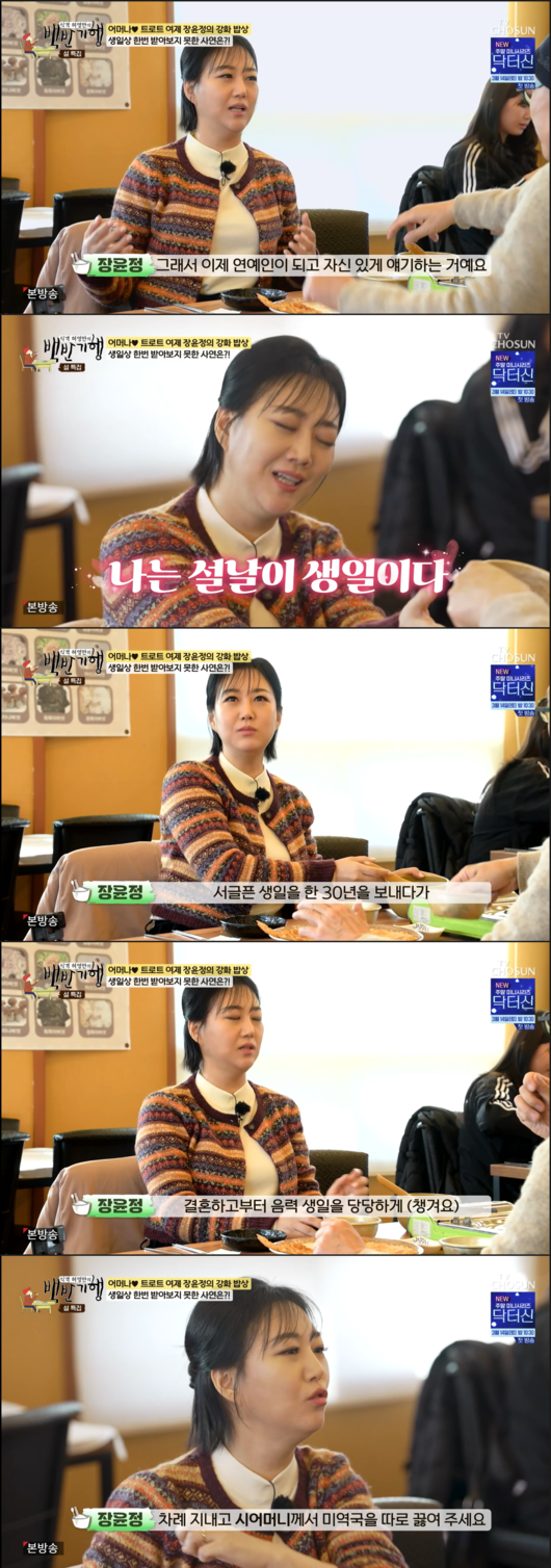 특히 장윤정은 결혼 후 비로소 되찾은 생일의 의미를 전해 뭉클함을 자아냈다. 설날이 생일인 그녀는 결혼 전까지 미역국을 따로 먹어본 적이 없다고 밝히며, “서글픈 생일은 한 30년을 보내고 결혼하고부터 음력 생일을 당당하게 (챙겨요). 차례 지내고 시어머니께서 미역국을 따로 끓여주세요”라고 고백했다.