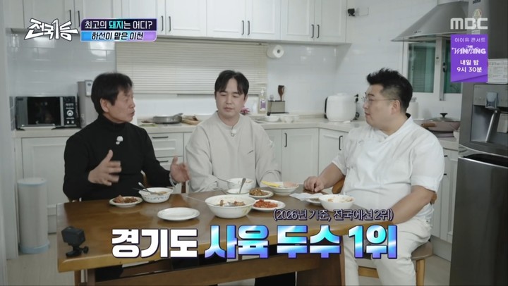 이원일은 이천 하면 빼놓을 수 없는 쌀밥과 함께한 삼겹살 한 점으로 '환상 조합'을 완성하기도 했다. 이를 지켜보던 문세윤은 "저거 제일 좋아하는데"라며 부러움을 드러내 웃음을 아겼다.