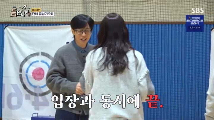 미션 성공을 위해 유연석은 지예은과 함께 줄 안으로 들어가 박자를 맞추는 방법을 제안하고는, 혼신의 1:1 트레이닝을 가동했다. 그러나 막상 함께 들어가려 하자 지예은은 "같이 안 들어갈게요. 무서워요"라며 털썩 주저앉아 웃음을 자아냈다.