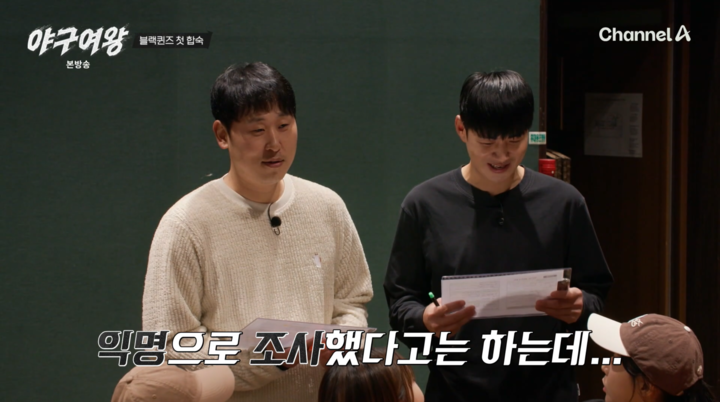 훈련 뒤 이어진 첫 합숙에서는 멤버들의 ‘매운맛’ 본성이 드러났다. 이대형·윤석민 코치가 준비한 익명 설문조사 결과가 공개되자 현장은 순식간에 아수라장이 됐다. 윤석민 코치는 “운동선수들이 직설적인데 너희가 한 수 위”라며 혀를 내둘렀다.