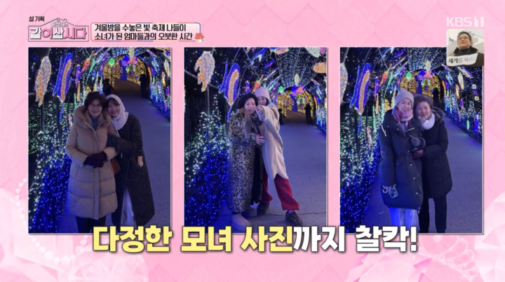 세 모녀는 가평 빛축제를 찾아 사진과 영상을 남기며 소중한 추억을 기록했다. 정가은은 어머니에게 감사를 전했고, 어머니는 가장 역할을 하느라 24시간이 모자란 정가은을 향해 “너무 그러지 말라"며 진심 어린 위로를 건넸다.