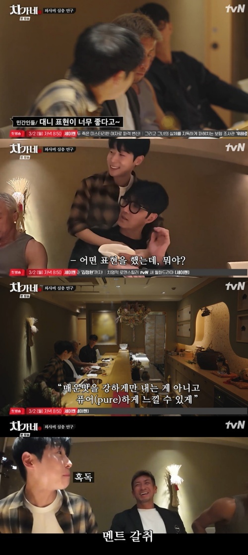 19일 오후 방송된 tvN 예능 프로그램 '차가네'에서는 배우 차승원, 이종격투기 선수 추성훈, 바이올리니스트 대니구 등 출연진이 일본 현지 식당을 찾아 매운맛 연구에 나섰다.
