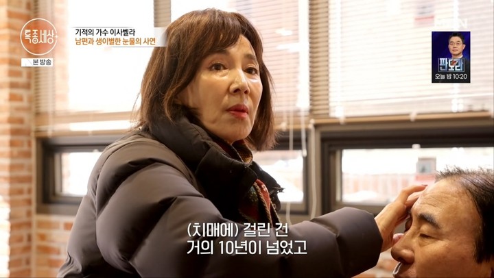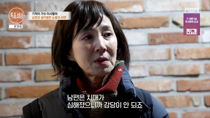 19일 방송된 MBN '특종세상'에서는 가수 이사벨라와 치매를 앓고 있는 남편의 근황이 공개됐다.