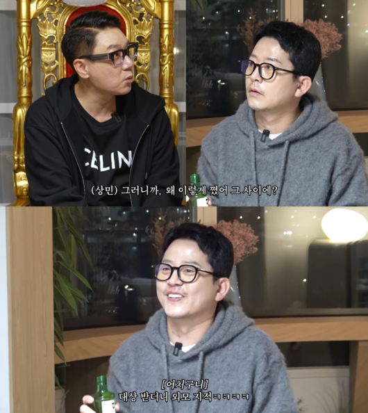 이상민은 “턱이 갑자기 쪘는데?”라고 했고 김준호는 민망해 하며 “대상 받더니 외모 지적”이라고 한마디 했다. 그러면서 “형도 그렇게 좋아 보이지는 않는데”라고 반격했다.