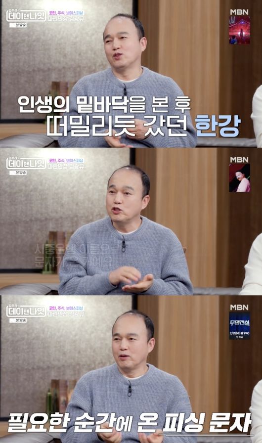 이어 “20살 되면서 신발 공장에서 시작했다. 택시하고 웨이터 하고 영업사원하고 장돌뱅이 해서 모은 돈을 주식으로 날렸다. 끝까지 가봤다. 그때 한강에 많이 갔다. ‘양화대교’ 노래 듣자마자 울었다”라며 힘든 시기 한강을 찾았다고 밝혔다.