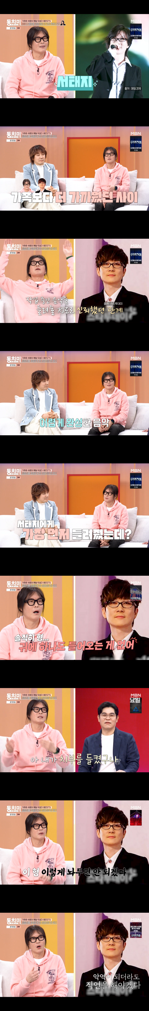 김종서는 “앞에서는 발끈했지만, 집에와서 생각하며 들켰구나 했다. (서태지가) ‘이 형 이렇게 놔두면 안되겠다. 내가 악역이 되더라도 직언을 해야겠다’ 했던 것 같다. 이걸 시간이 흘러서 알게됐다.”고 덧붙였다.