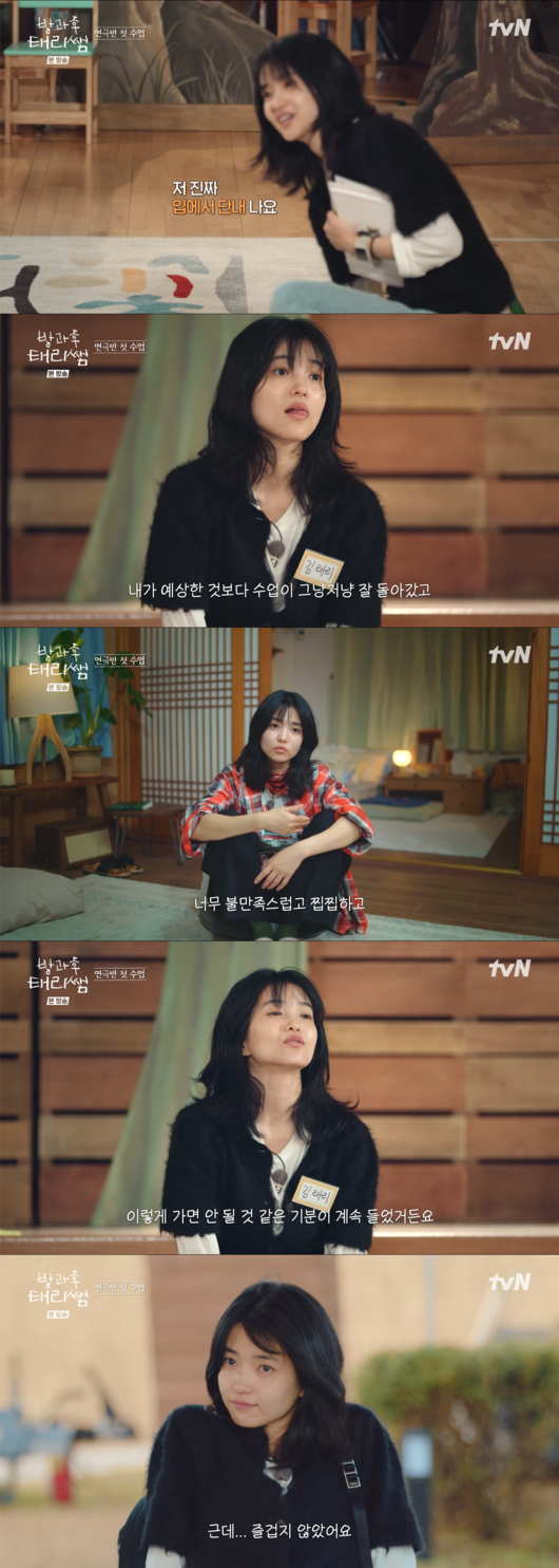 김태리는 “저는 너무 불만족스럽고 찝찝하고, ‘이게 뭘까?’ 이렇게 가면 안 될 것 같은 기분이 계속 들었거든요”라고 덧붙이며 첫 수업에 대한 아쉬움을 드러냈다.