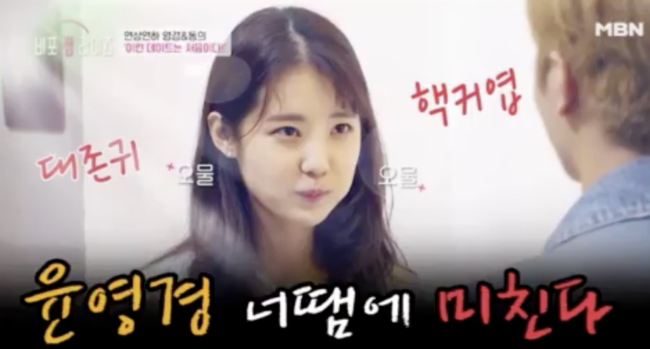 윤영경은 2019년 연애 예능프로그램에도 출연한 바 있는데, MBN 예능프로그램 ‘비포 썸 라이즈’에 출연해 풋풋하고 사랑스러운 비주얼과 통통 튀는 성격을 뽐내며 출연자들과 시청자들의 사랑을 받았다.