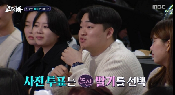 이날 사전 투표, VCR 중간 투표, 블라인드 최종 투표를 통해 단 한 지역만이 '전국 1등'으로 선정될 수 있었다. 본격 대결을 앞두고 평가단이 준비한 사전 투표의 1위는 논산이었다. '딸기 천국' 음식들을 먹어본 신유는 여러 딸기 음식을 시식한 후 "논산 라떼가, 어우 진짜 맛있더라고요"라며 시식 후기를 전했고, 방청석의 관객은 "사전 투표 때 당연히 논산을 찍었는데, 먹어보니 진주 딸기가 제일 맛있다"라고 평해 놀라움을 안겼다.