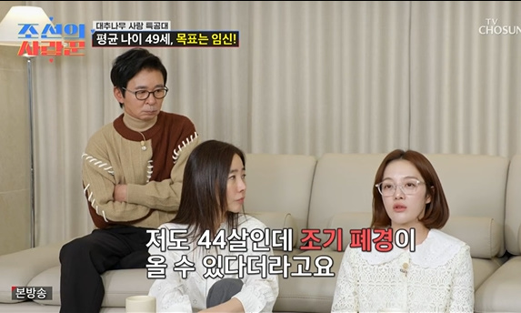 이를 지켜보던 황보라는 “나도 44세인데 조기 폐경이 올 수 있다고 하더라”며 “여자는 시간이 정해져 있어 압박이 크다. 그래서 빨리 시험관 시술을 시작했다”고 털어놨다. 그는 “언젠가 끝이 있기 때문에 더 간절해진다”며 같은 상황에 놓인 아내들의 마음에 공감했다.