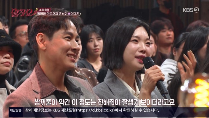 두 사람은 고민도 달달함했다. 윤남기는 “육아 전쟁을 치르고 있지만 다은이가 여전히 예쁘고 섹시해 보인다”고 고백해 스튜디오를 술렁이게 했다. 이에 이다은도 “평생 쌍꺼풀 있는 남자와 인연이 없었는데, 남편 정도로 진한 쌍꺼풀이 있어야 잘생겨 보인다”고 화답하며 애정을 드러냈다.
