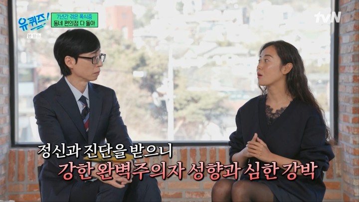 심리적 압박은 신체적 증상으로 이어졌다. 불면증과 함께 폭식증을 겪었고, 배가 고프지 않아도 멈추지 못하는 지경에 이르렀다. 그는 "씹느라 턱이 부어있는 내 얼굴을 보고 울었다"고 털어놨다. 병원에서는 강한 완벽주의 성향과 강박으로 인한 증상이라는 진단을 받았다.