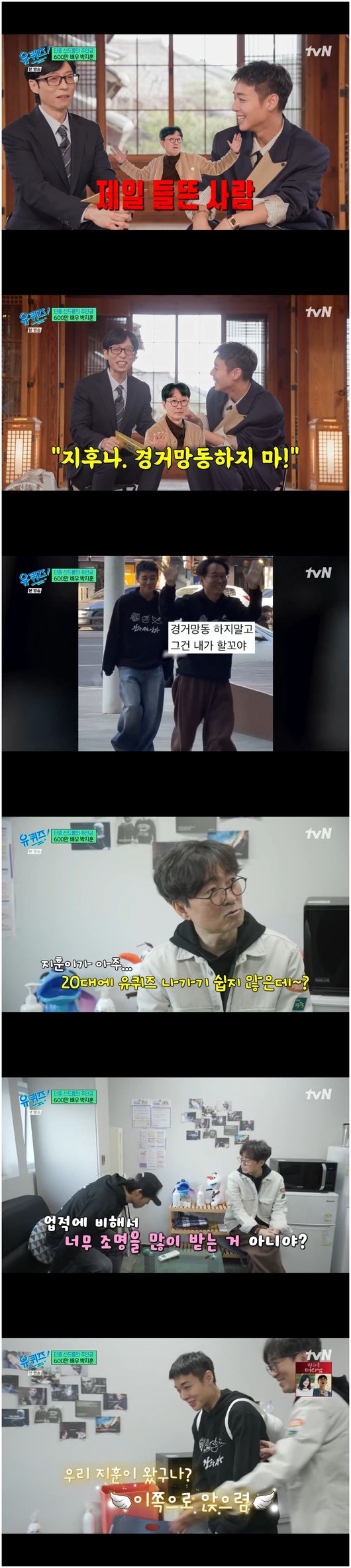 한편 장항준은 무대 인사 대기실 VCR에서 “지훈이가 20대에 유퀴즈를 나간다니, 업적에 비해 너무 조명 받는 거 아니냐”라고 말하더니 “지훈아, 여기 앉으렴”, “아침마다 지훈이는 잘 잤는지, 아침은 잘 먹었는지”라며 다정하게 말해 유해진을 기막히게 했다.