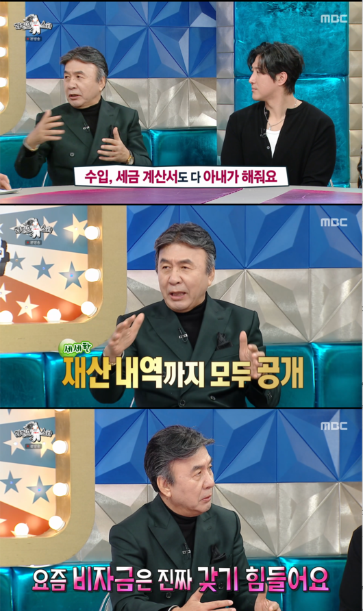 결혼 후 재산 관리에 대해 박영규는 현재 재산 관리를 아내가 전담하고 있다며 “수입, 세금 계산서도 다 아내가 해줘요”라고 설명했다. 세세한 재산 내역까지 모두 공개했다는 박영규는 비자금은 없느냐는 물음에 “비자금이 어딨어요”라고 단호하게 답했다.