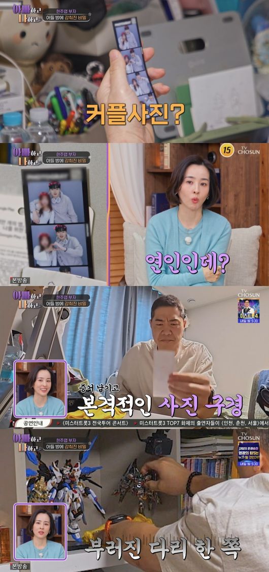 이날 현주엽은 아들 준희가 편의점에 간 사이 아들 방을 청소하기 시작했다. 책상 정리 하던 중 그는 아들이 첫사랑 누나와 찍은 커플 사진을 발견하고 깜짝 놀랐다.