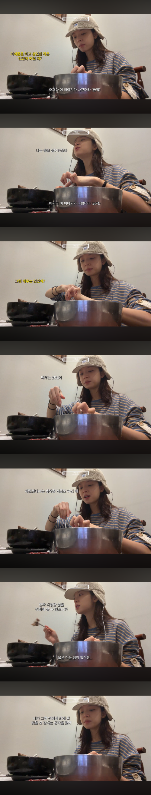 이어 남편이 “그럼 배우는 있었어?”라고 묻자 김지영은 “배우는 있었다. 재밌겠다는 생각을 지금도 하긴 해. 진짜 다양한 삶을 경험해 볼 수 있으니까, 내가 그런 면에서 되게 잘 맞을 것 같다는 생각을 했어”라고 말했다.
