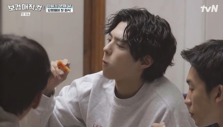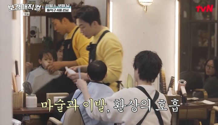 27일 tvN 예능 프로그램 '보검매직컬'에는 귀여운 꼬마 손님이 방문해 배우 박보검, 이상이, 곽동연을 웃음 짓게 했다. 이날 박보검은 '돌직구'가 장착된 귀여운 4살 손님을 맞이해 커트에 도전했다.