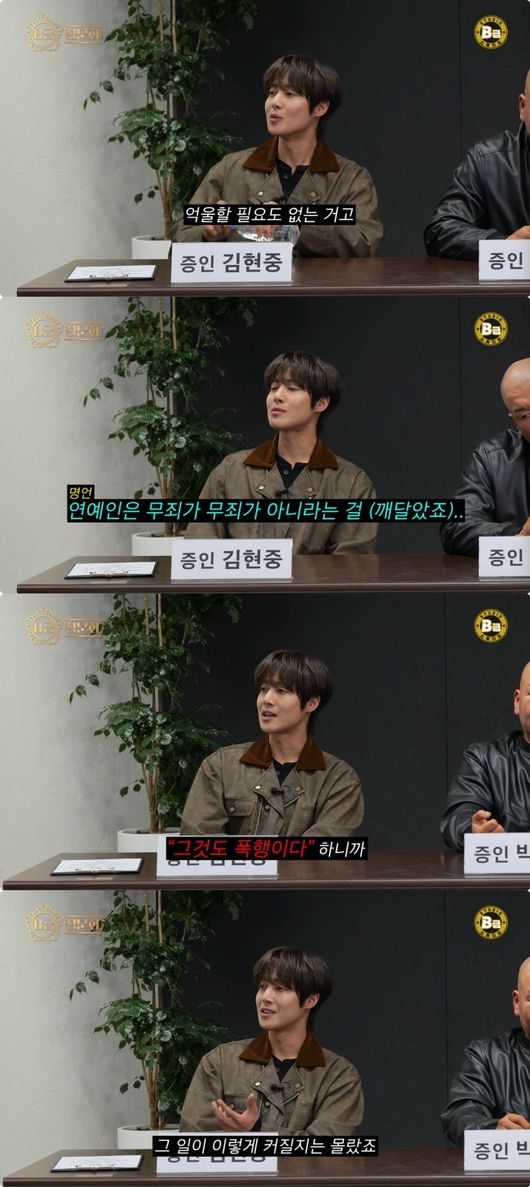그러면서 김현중은 과거의 사건들에 대해서 “안 억울하다. 억울할 필요도 없는 거고, 연예인은 무죄가 무죄가 아니다라는 걸 깨달았다”라고 밝혀 눈길을 끌었다.