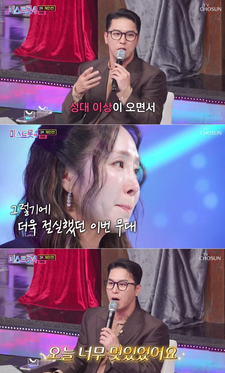특히 해당 무대를 본 마스터 장민호의 심사평이 큰 울림을 선사했는데, 당시 장민호는 "채윤 씨는 제가 트로트 데뷔하던 때부터 왕성하게 활동하던 가수였다. 무명 가수들이 부러워할 정도로 많은 활동을 했다. 그런데 갑작스러운 성대 문제로 활동을 못 하는 시간들이 있었다. 오늘 채윤 씨의 무대를 보면서 TOP10 여부를 떠나 너무 멋있더라. 그 과정을 극복해나가고 목소리를 되찾은 거 축하드리고, 앞으로도 계속 노래할 수 있는 채윤이 되기를 응원한다"고 전했다.