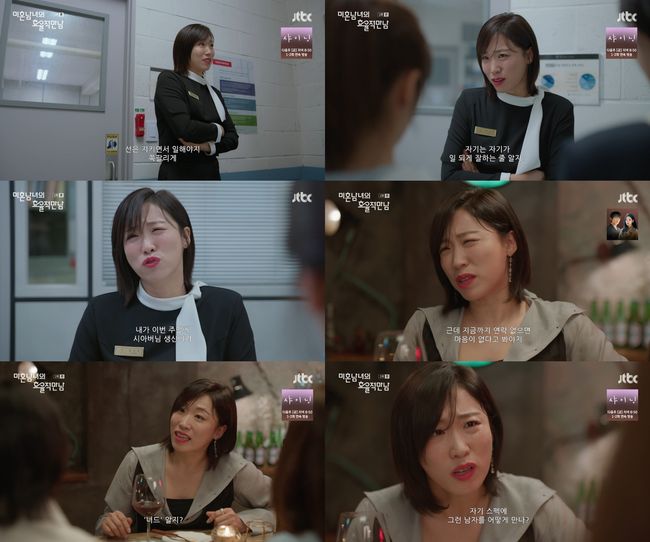 2회에서는 정나리의 '밉상력'이 한층 업그레이드됐다. 소개팅 애프터 연락을 기다리는 이의영에게 "지금까지 연락 없으면 마음 없다고 봐야지"라며 은근히 속을 긁는가 하면, 급기야 직접 소개팅을 주선하며 "자기 스펙에 그런 남자 어떻게 만나"라며 거침없는 팩트 폭격을 날렸다. 이후 정나리는 "옷이나 머리는 신경 쓰고 갔어?"라고 쉴 틈 없이 훈수를 두며 극강의 '오지라퍼'로 활약했다.