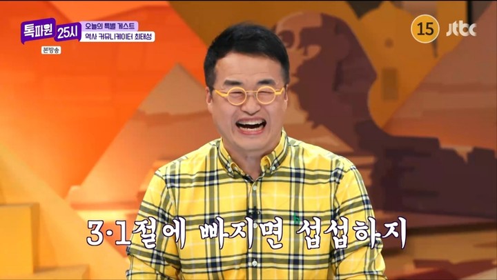 2일 방송된 JTBC '톡파원 25시'에서는 삼일절을 맞아 한국사 강사 최태성이 출연해 입담을 뽐냈다.