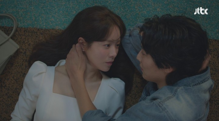 실연의 아픔 앞에서도 애써 평온한 척 출근하는 건조한 눈빛, 소개팅 자리에서 조건을 깐깐하게 따지면서도 내면의 취약함을 다 숨기지 못하는 미세한 떨림은 감탄을 자아낸다. 특히 2회의 놀이터 씬은 한지민의 진가가 폭발한 대목이다. 소개팅 대타로 나온 신지수(이기택 분)의 돌발 행동에 찰나의 강렬한 떨림을 느끼고도, 이를 이성으로 짓누르며 "단순한 성욕"이라고 단호하게 선을 긋고 돌아서는 장면은 압권이었다. 그녀는 머리와 가슴이 충돌하는 그 혼란스러운 찰나를 완벽하게 낚아챘다.