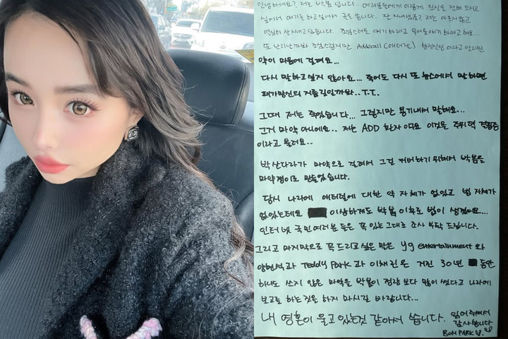 그러면서 "양현석과 테디 박, 이채린은 박봄이 거진 30년 동안 하나도 쓰지 않은 마약을 정량보다 많이 썼다고 나라에 보고하는 짓을 하지 마라"라고 토로했다. 해당 게시물은 현재 지워진 상태다.