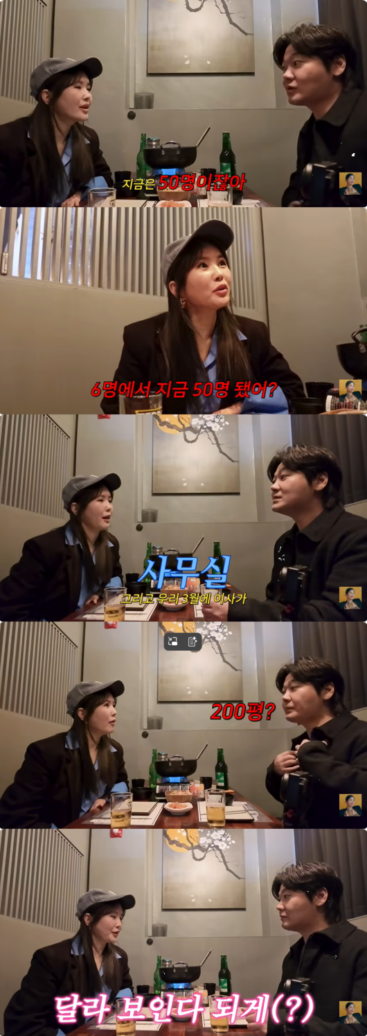 이에 담당 PD는 장영란에게 "선배 덕분에 직원 6명으로 시작해 지금은 50명이 됐다"며 "오는 3월에는 200평 규모의 새 사옥으로 이사한다"고 밝혔다.