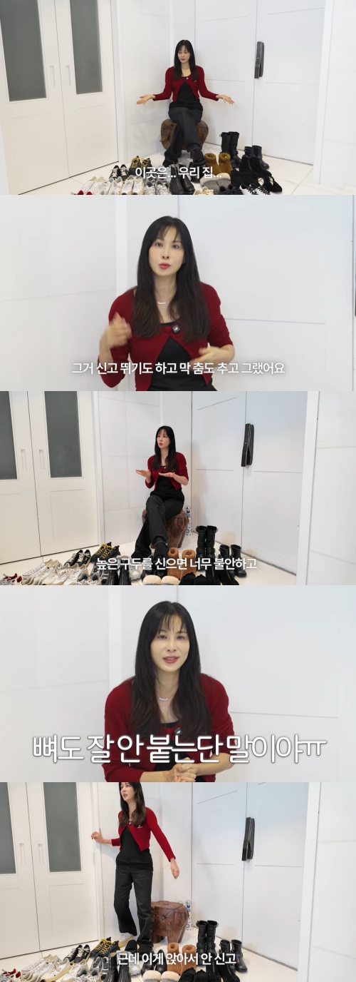 운동화 지분이 80%를 자랑했고, "어렸을 때는 높은 구두와 예쁜 슈즈를 많이 신었다. 그걸 신고 나름대로 뛰기도 하고 춤도 췄는데 한번 내려오니까 다시 못 올라가겠다"며 "높은 구두를 신으면 너무 불안하고 걸음 걸이가 이상해진다. 우리 나이에 넘어지면 뼈도 잘 안 붙는다.(웃음) 이제 겁이 점점 많아져서 운동화를 많이 신는다"고 말했다.