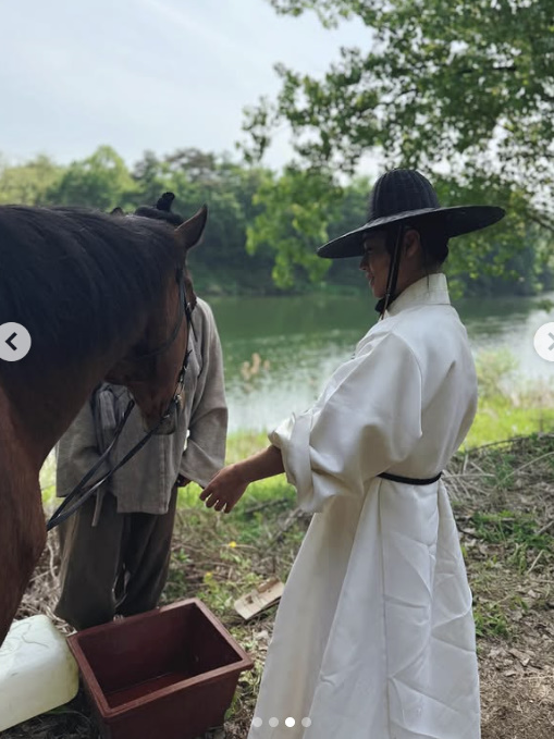 사진 속 박지훈은 흰 한복 차림으로 산속에서 꽃을 들고 카메라를 바라보거나, 말을 돌보는 장면을 준비하는 모습 등 영화 촬영 현장의 분위기를 그대로 전하고 있다. 또 바위 위에 앉아 있는 장면에서는 극 중 인물의 고요하고 쓸쓸한 분위기까지 느껴지며 작품의 여운을 더한다.
