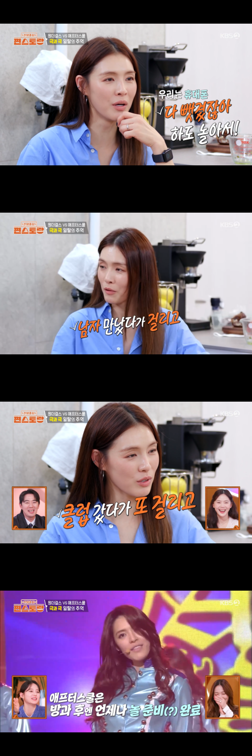 이어 가희는 자신의 경험을 털어놓으며 웃음을 안겼다. 그는 “우리는 하도 놀아서 핸드폰을 다 뺏겼다”며 “맨날 어디 나가서 남자 만나고 그러다 걸리고, 클럽 가도 또 걸리고 맨날 그랬다”고 솔직하게 고백했다.