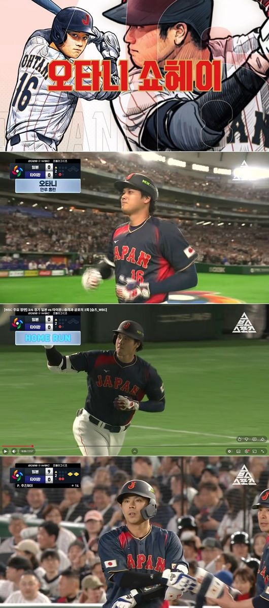 이날 경기의 주인공은 단연 오타니 쇼헤이였다. 1회 첫 타석부터 2루타를 신고한 오타니는 2회 두 번째 타석에서 도쿄돔 담장을 훌쩍 넘기는 만루 홈런을 터뜨리며 경기장을 열광의 도가니로 만들었다. 오타니의 홈런이 터지는 순간, 정우영 캐스터는 “쇼타임이 시작됐다!”며 현장의 열기를 안방까지 전했다. 이대호 위원 역시 “대단하다. 느린 변화구를 가볍게 툭 쳤는데 그냥 넘어가 버렸다”며 감탄을 금치 못했다. 특히 이대호 위원은 경기 전 타격 훈련을 언급하며 “외야 광고판 위 조명까지 넘기는 타구는 난생처음 봤다. 오늘 경기를 보면서도 다시 한번 충격을 받았다”고 혀를 내둘렀다.