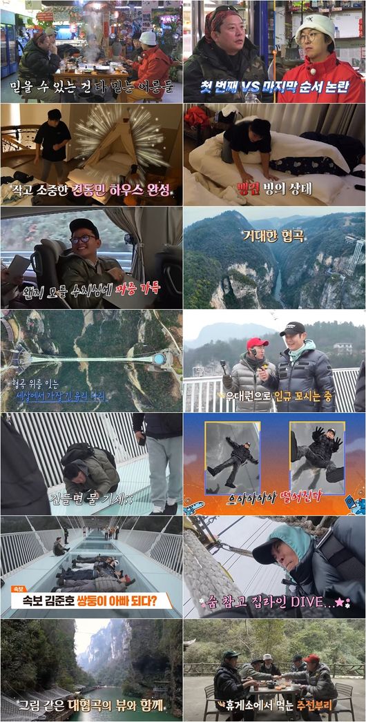 [OSEN=최이정 기자] 7일 방송된 채널S ‘니돈내산 독박투어4’(채널S, SK브로드밴드 공동 제작) 40회에서는 중국으로 떠난 김대희x김준호x장동민x유세윤x홍인규가 ‘장가계 대협곡’에서 장엄한 대자연의 풍광을 즐기며 짜릿한 액티비티와 현지 맛집까지 섭렵하는 현장이 펼쳐졌다.