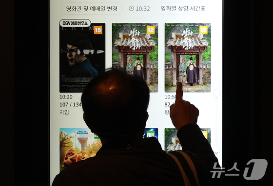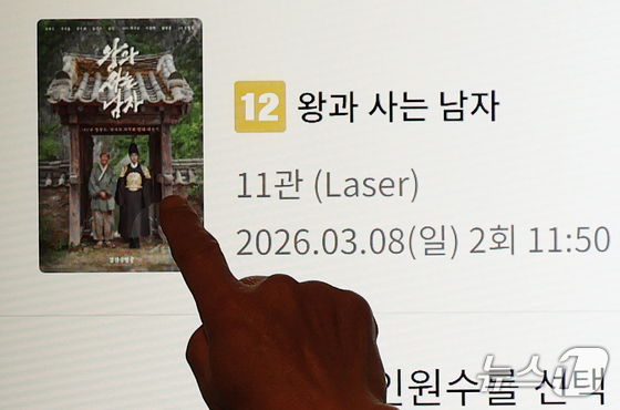 8일 서울 용산구의 한 영화관에서 관람객이 천만 관객을 돌파하며 흥행 질주 중인 영화 '왕과 사는 남자' 티켓을 구매하고 있다. 2026.3.8 © 뉴스1 오대일 기자