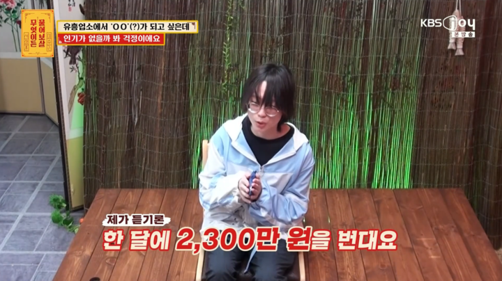 9일 방송된 KBS Joy 예능 프로그램 ‘무엇이든 물어보살’에는 유흥업소에서 일하고 싶다는 사연자가 등장해 시청자들의 이목을 끌었다. 이날 사연자는 “유흥업소에서 일을 시작하고 싶은데, 인기가 없을까 봐 걱정이다”라며 상담의 문을 열었다.