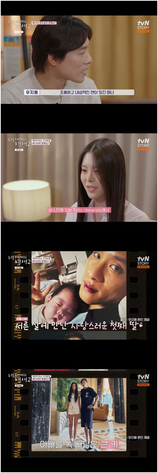 우서윤의 아버지는 바로 우지원이었다. 부녀가 함께 찍은 사진은 그저 모델 투샷이나 다를 바 없었다. 이성미는 "사진 늘린 거죠?"라며 놀라워했다.