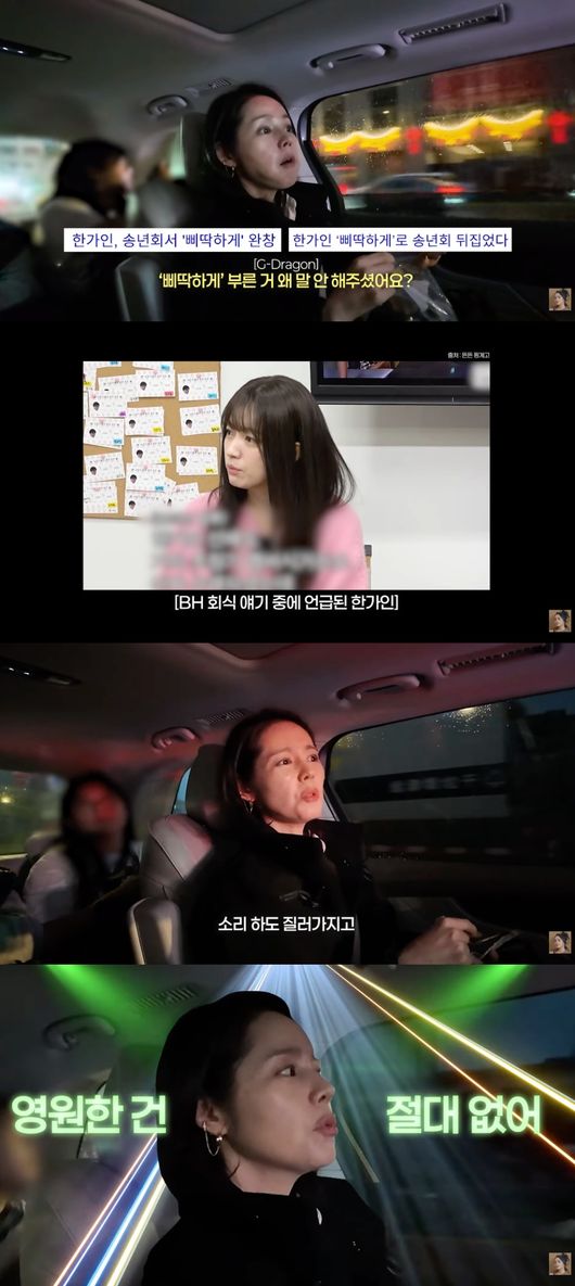 [OSEN=연휘선 기자] 배우 한가인이 소속사 BH엔터테인먼트 회식에서 '삐딱하게'를 불러 화제를 모은 일에 대해 밝혔다.