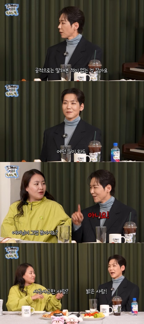 카이가 "어떤 일이 와도 잘 웃는 그런 사람 있지 않나? 그런 유형"이라고 솔직히 말했다. 조현아가 "혹시 어머니가 그런 유형이냐? 보통 어머니와 비슷한 사람을 따라가던데?"라며 질문을 이어갔다. 카이가 "아니다"라면서 단호하게 선을 그어 폭소를 안겼다.